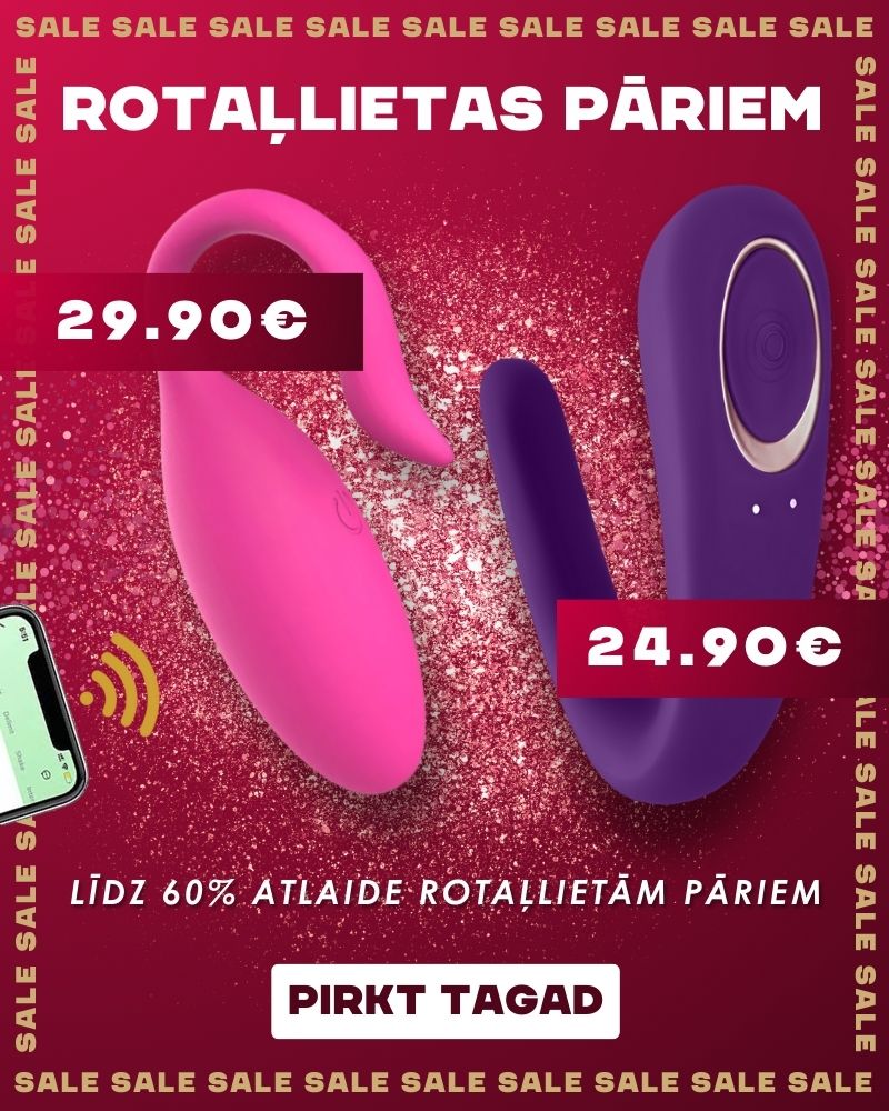 Pie mums vari iegādāties un atklāt plašu dažādu un patīkamu seksa rotaļlietu klāstu vīriešiem, sievietēm un pāriem. Neatkarīgi no tā, vai meklē seksa rotaļlietas lietošanai vienatnē vai kopā ar partneri, mums noteikti ir kaut kas, kas tev patiks. Piedāvājam visu – sākot no dildo un vibratoriem līdz masturbatoriem, peniem gredzeniem un seksīgam apakšveļam. Mums ir arī plašs lubrikantu klāsts, kas palīdz baudīt vēl vairāk, izmantojot savas seksa rotaļlietas. Iepazīsti visu mūsu piedāvājumu un atklāj savas jaunas iecienītās seksa rotaļlietas.