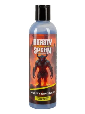 Beasty Sperm Mighty Minotaur no Beasty Cocks ir unikāls lubrikants pelēkzilā tonī ar biezāku konsistenci, iedvesmots no varenā minotaura spermas.