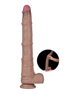 Pateicoties divslāņu uzbūvei – stingram iekšējam kodolam un īpaši maigam ārējam silikona slānim – tas jūtas gluži kā īsta erekcija. Izteiktais, noapaļotais galiņš un izteiksmīgās vēnas gar kātu ir rūpīgi veidotas, lai sniegtu maksimālu iekšējo stimulāciju. Teksturētās sēklinieku daļas vēl vairāk pastiprina reālistisko efektu, lai katrs mirklis būtu īpaši baudāms.