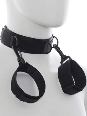 - Easy Cuffs Collar Arms Restraint no Toyz4Lovers ir ērti valkājams, taču padara izkļūšanu pilnīgi neiespējamu.