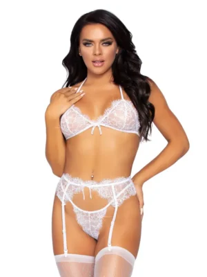 Leg Avenue Bra, Garterbelt & G-string White