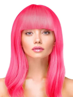 Gara neonrozā parūka ar taisniem matiem un čolku.