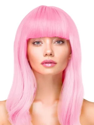 Gara gaiši rozā parūka ar taisniem matiem un čolku.