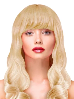 Gara gaiša parūka ar viļņotiem matiem un čolku.