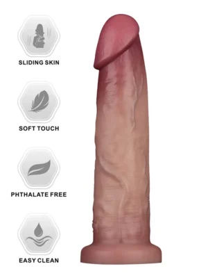 Šis dildo, kas veidots no augstākās kvalitātes sliding-skin silikona, dāvā neticami reālistisku izjūtu. Uzlabotā divu blīvumu tehnoloģija atdarina ereģēta dzimumlocekļa sajūtu, nodrošinot maigu un elastīgu ārējo slāni ar patīkami stingru kodolu – pieredzi, kas pārspēj pašu realitāti. Produkts ir rūpīgi izgatavots no medicīniskā silikona, lai maksimāli imitētu dabisku ādas sajūtu ar izcilu detalizāciju un pārsteidzoši reālistisku efektu. Lai gūtu maksimālu baudu, izmantojiet uz ūdens bāzes veidotu lubrikantu, kas pastiprinās sajūtas gar reālistisko kātu.