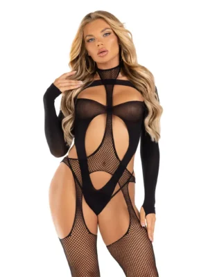 Suspender Bodystocking & Cut-Out Teddy Black